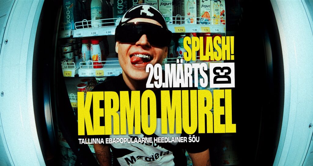 Me oleme Splashiga tagasi ja seda suurelt – just nagu alustas Kermo Murel oma esimese looga “EBAPOPULAARNE”, mis püstitas Eesti kuulamiste rekordi, kogudes Spotifys esimesel päeval 26 000 kuulamist. Kermo Murel on hetkel Eestis kõige kõvem artist, olles spotify edetabelis number 1. Tegemist saab olema Kermo Mureli esimese Tallinna heedlainer šõuga peale laulu ametliku reliispartit!
